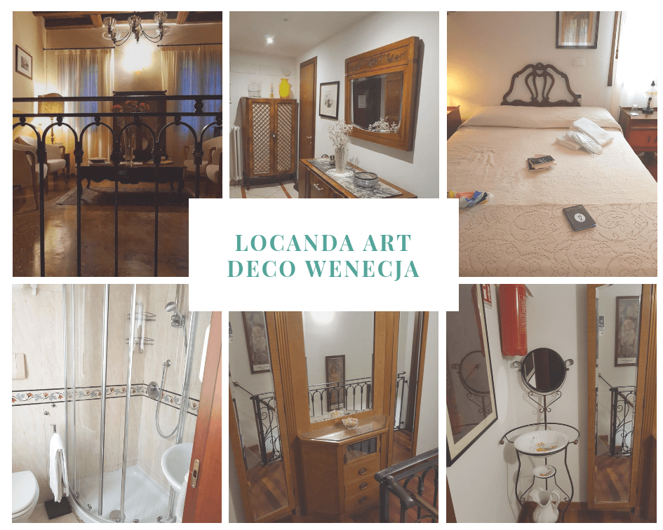 2) Locanda Art Deco– to miejsce, w którym zatrzymała się Monika. Napisała o nim: „Nocowałam w Wenecji na początku września- hotel Locanda Art Deco. Nocleg kupiłam już w styczniu, mieli fantastyczną promocję. Wieczór i noc w Wenecji bez tłumów turystów to niesamowite przeżycie. Hotel był rewelacyjny, butikowy jeśli chodzi o wystrój i wielkość, z bardzo dobrym śniadaniem kontynentalnym. Od placu św Marka ok 10 min spacerkiem.” Poniższy kolaż składa się ze zdjęć, które Monika zrobiła na miejscu: