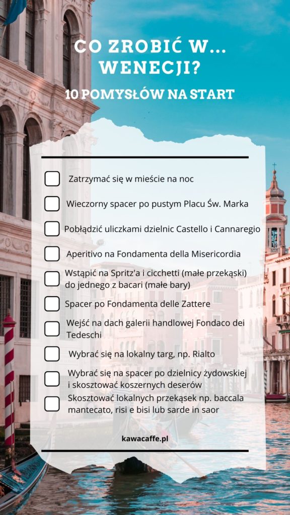 - (ewentualnie) jeśli planujesz dłuższy pobyt w okolicy, pomyśl o rezerwacji w dwóch miejscach: 2-3 noce w Wenecji, reszta w innym mieście.